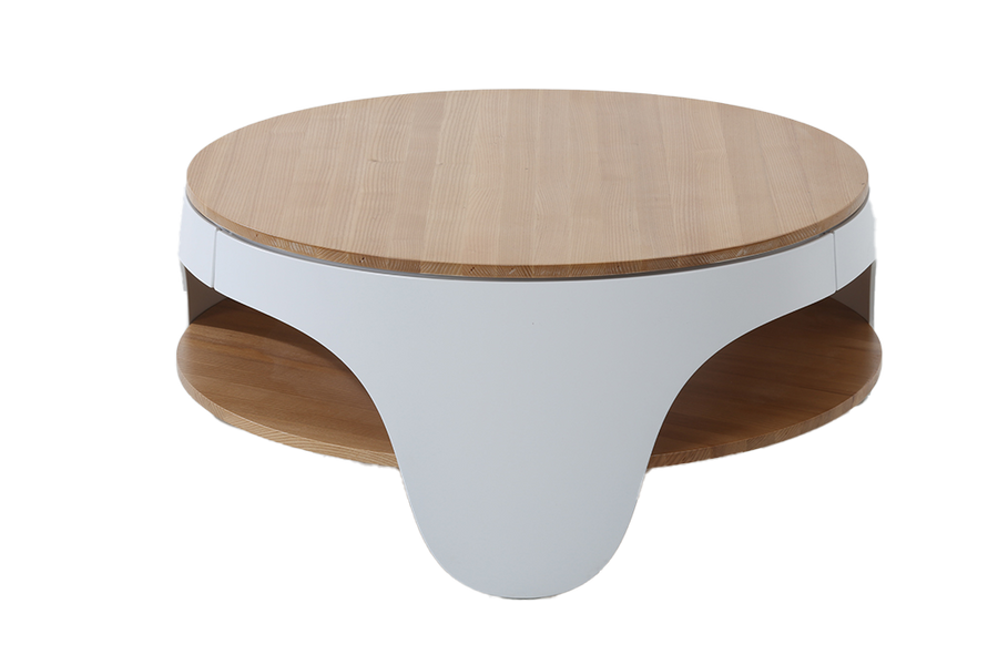 Inspired by the simplicity and elegance of Japanese Muji design, the Kanso Round Coffee Table is a harmonious blend of natural materials and minimalist aesthetics. Featuring an ash veneer wood surface and a seamless polypropylene (PP) frame, this coffee table brings a warm and inviting vibe to your living space. Its functional lower shelf adds practicality without compromising style.