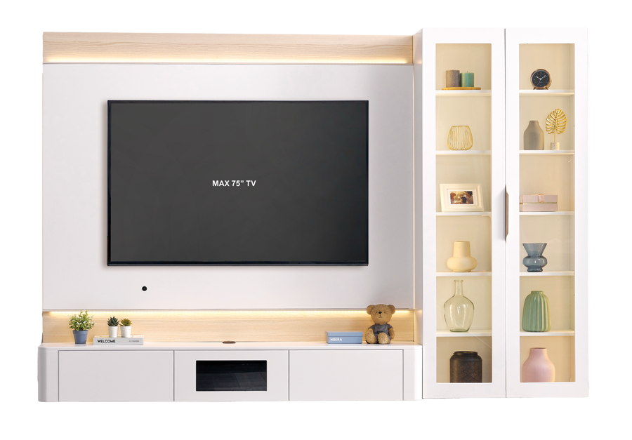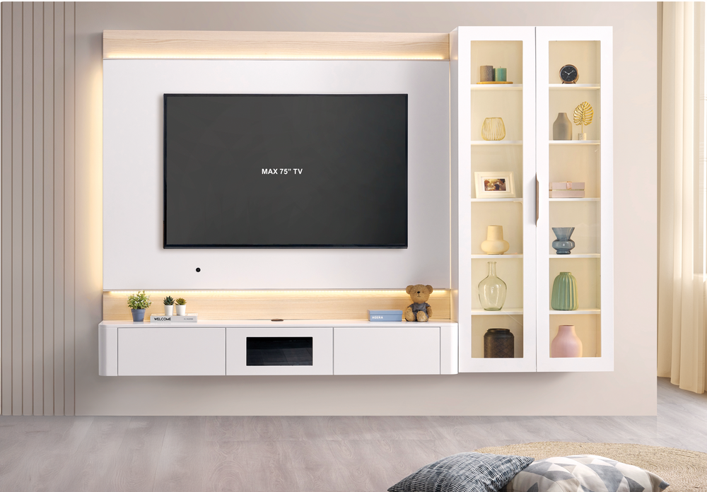 Introducing the BIANCA Wall TV Cabinet, a perfect blend of functionality and Muji-inspired minimalist design. This wall-mounted cabinet is thoughtfully designed with safety and convenience in mind, featuring rounded edges for added protection—ideal for families with children. Its floating design creates a clean and modern look while maximizing floor space.