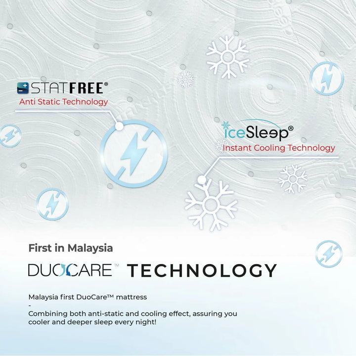 - Teknologi IceSleep® akan meningkatkan penyerapan haba fabrik dan menyebarkan haba ke dalam tilam. Kain ini mempunyai permukaan seperti sutera yang memberikan kesan penyejukan apabila disentuh.